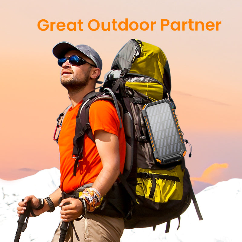 Rugged Design for Outdoor Adventures: Our solar battery pack is waterproof, shockproof, and dustproof to withstand the harshest outdoor conditions. Equipped with dual super bright LED lights, it's a must-have for outdoor activities and home emergencies.