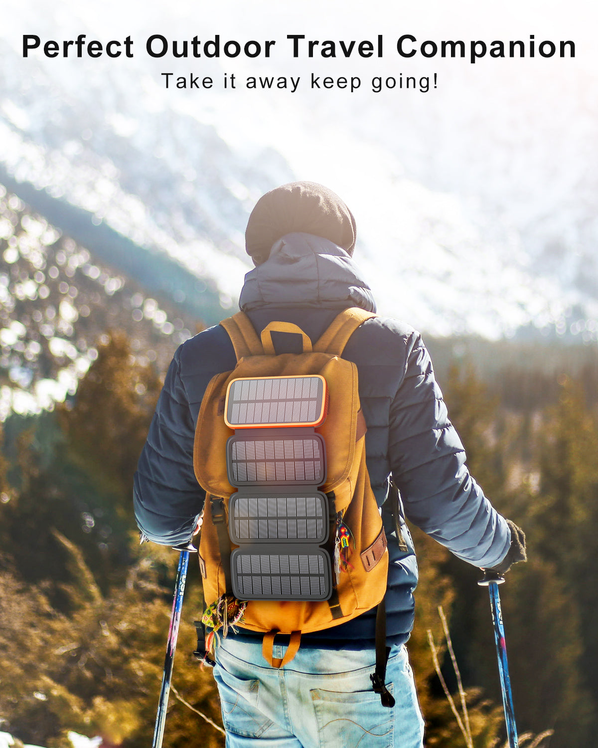 【Dual Charging Options】Now you can charge the solar charger via the USB C port and solar energy. Even without a cable, the included four foldable solar panels can generate up to 1A of current to charge the power bank, which is 4 times faster than a single panel.