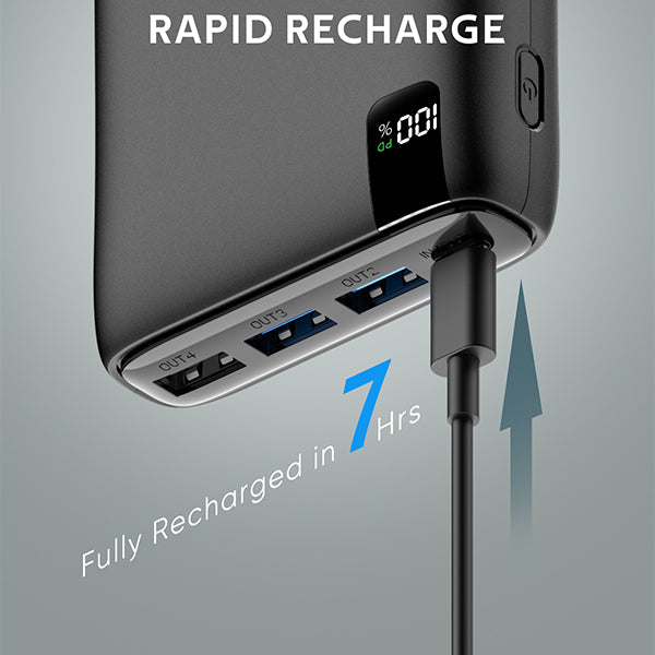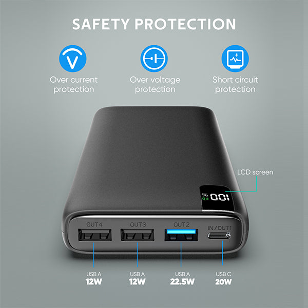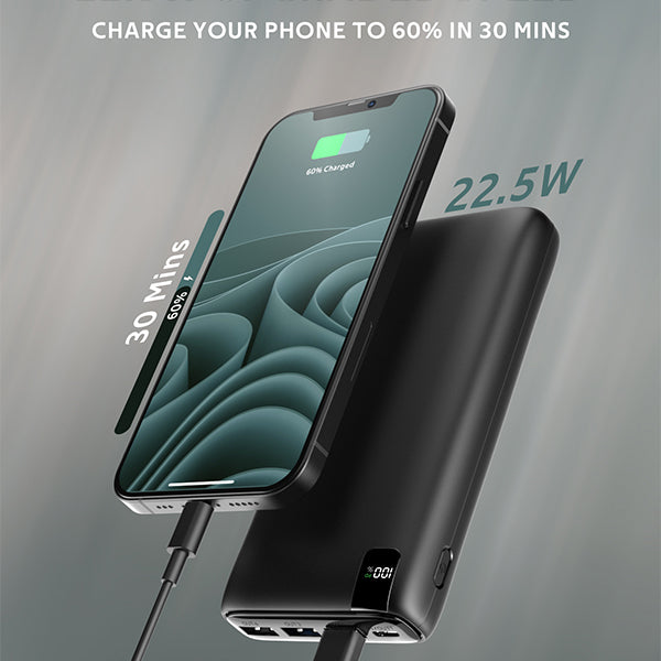 Quick Charging: Designed with 22.5W and PD QC 3.0, the power bank can bring your phone back to 50% in just 30 minutes. Plus there are 4 outputs which can power 4 devices at once.